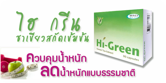 ไฮ กรีน ทางเลือกที่ดีมาก เป็นทางลัดในการลดน้ำหนักแบบธรรมชาติสุดๆ เป็นชาเขียวสกัดเข้มข้นชนิดแคปซูล ที่ให้สารสำคัญในการลดน้ำหนัก ในปริมาณสูง (ไม่ต้องเสียเวลาซื้อแบบชงกับน้ำร้อน เพราะต้องชงดื่มหลายครั้ง จึงจะได้คุณค่าเท่ากับไฮกรีน 1 เม็ด )