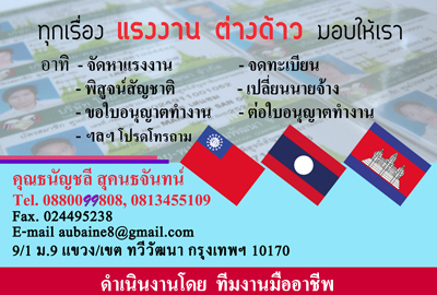 หากท่านไม่มีเวลาดำเนินการเรื่อง แรงงานต่างด้าว พม่า, ลาว, กัมพูชา เราขออาสาทำให้ท่าน