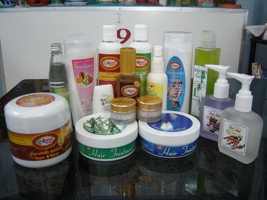 สมุนไพร จันทร์ทอง แชมพูป้องกันผมร่วง รังแค แก้คันศรีษะ พร้อมครีมนวดผมที่ทำให้ผมดกดำ แฮร์โลชั่นบำรุงรากผมให้แข็งแรง เร่งผมยาว ด้วยส่วนผสมของสมุนไพรจากธรรมชาติ , สครับขัดผิวขาว ซึ่งมีส่วนผสมของน้ำผึ้ง,มะขาม,ขมิ้น
