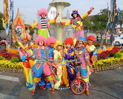 ตัวตลกโบโซ่บิดแจกลูกโป่ง ตัวตลกขายาว จั้กกลิ้ง จักรยานล้อเดียว ตัวการ์ตูนมาสคอท