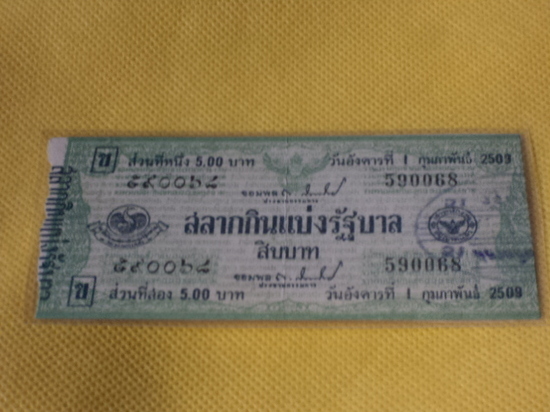สลากกินแบ่งโบราณปี พ.ศ. 2509 เป็นสลากโบราณหาดูได้ยาก อักษร ข สภาพ 90% สมัยก่อนคู่ละ 10 บาท