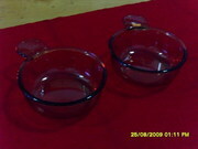 เครื่องครัว ของใหม่ ชามแก้วใสสีชาอ่อน มีที่จับข้าง ขนาด 5นิ้ว ยี่ห้อ Visions made in USA. ขายเพียงใบละ 700บาท