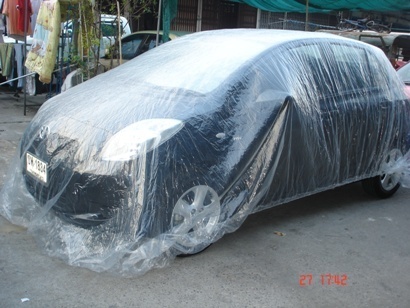 จำหน่ายพลาสติกใสคลุมรถ กันน้ำ กันฝุ่น กันมูลนก เนื้อ PE เหนียวใส ไม่มีรอยต่อเป็นผืนใหญ่