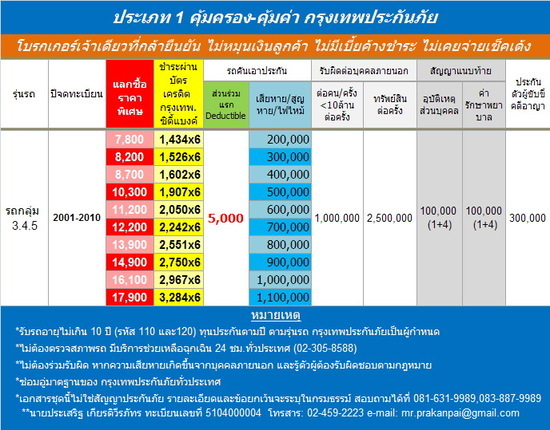 ......................ประกันภัยประเภท 1 แค่ 7,800 บาท ดูได้ที่ http://www.pantipmarket.com/view.php?id=A7220119