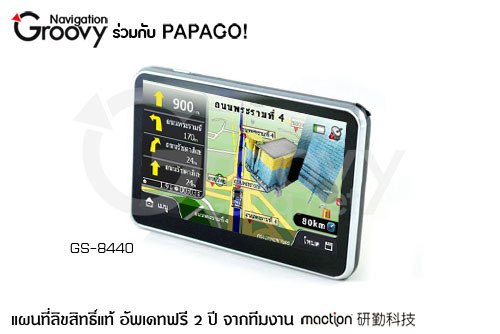 สบายใจกับแผนที่ลิขสิทธิ์แท้ ราคาประหยัด เมื่อ Groovy GPS ร่วมมือกับ Papago X6 ออก GPS 4.3 นิ้ว Spec แรง รุ่น GS-8400 แถม SD Card 4GB พร้อมอัพเดทแผนที่ฟรี 2 ปี มี Junction View เสียงนำทางบอกชื่อถนน ตามอัพเดทแผนที่กันได้ทุกเดือนแบบไม่ต้องลุ้น !!
