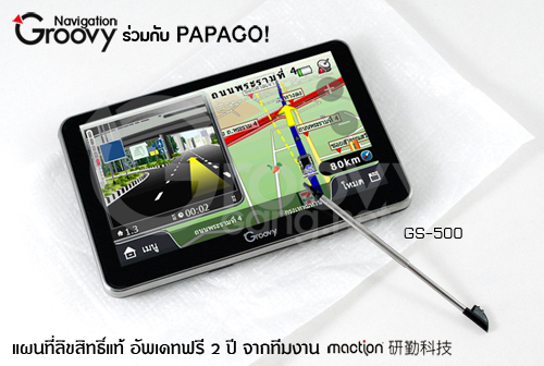Groovy GPS ร่วมมือกับ Papago X6 เปิดตัว GS-500 รุ่นสเปคตัวแรง ยอดฮิต หน้าจอความละเอียดสูง เปลี่ยนแบตได้ พร้อมแผนที่ลิขสิทธิ์แท้ รองรับ Junction View สมบูรณ์แบบ อัพเดทฟรี 2 ปีเต็ม แถมแบตเตอรี่ฟรีอีกหนึ่งก้อน พร้อมติดฟิล์มกันรอยลดแสงสะท้อน มี Video Review