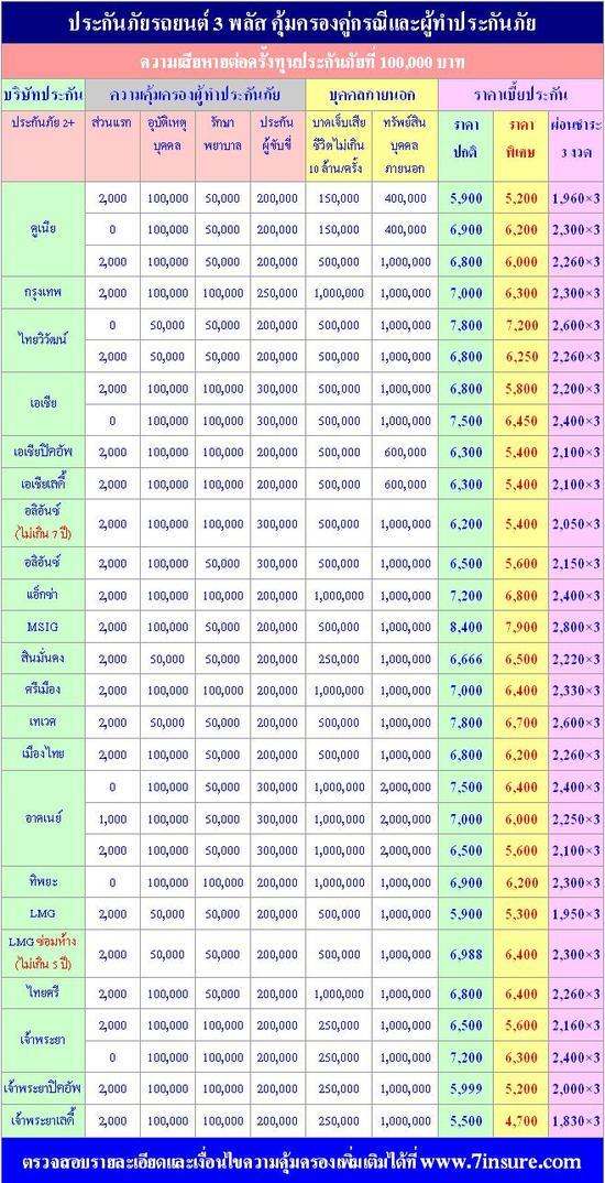 ประกันภัยรถยนต์ชั้น 3+ เริ่มต้นที่ 5,200 บาท ดูได้ที่ http://www.7insure.com/customize_0_62138_TH.html3