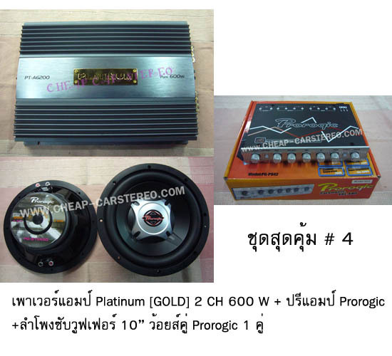 ชุดสุดคุ้ม # 4 ==เพาเวอร์แอมป์ Platinum [GOLD] 600 W + ปรีแอมป์ Prorogic + ลำโพงซับวูฟเฟอร์ Prorogic 10" ว้อยคู่