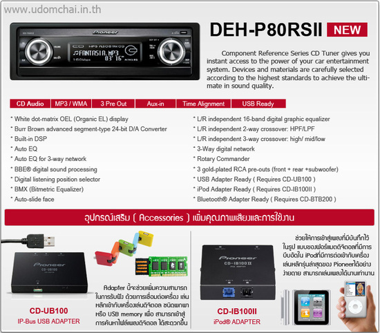 Pioneer DEH-P80RSII รองรับการใช้งาน CD/MP3/WMA/ACC และ Time Alignment ติดตั้งได้มาตรฐานต้องเรา ตัวเครื่องประกันศูนย์ Pioneer-Thailand ครับ