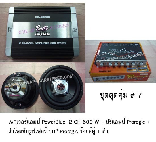 ชุดสุดคุ้ม # 7 ==เพาเวอร์แอมป์ PoweBlue 2 CH 600 W + ปรีแอมป์ Prorogic + ลำโพงซับวูฟเฟอร์ Prorogic 10" ว้อยส์คู่ 1 ตัว