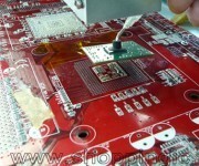 1. เตรียม Mainboard ที่ต้องการเปลี่ยนไอซี ใช้ flux amtech 559 ทา รอบๆชิป ที่ต้องการถอดเปลี่ยน