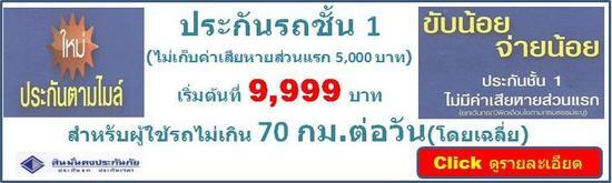 ประกันภัยรถ ชั้น 1 สำหรับคนใช้รถไม่เกิน 70 กิโลเมตรต่อวัน เพียง 9,999 บาท สินมั่นคง ประกันตามไมล์ ไม่ต้องโอนหรือชำระเบี้ยก่อนได้รับกรมธรรม์