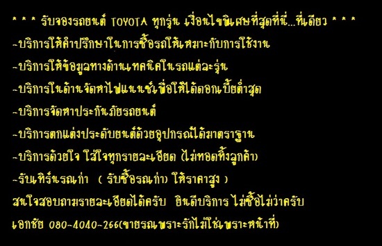 ### รับจองรถยนต์ TOYOTA ทุกรุ่น ถ้าชนทุกเงื่อนไข # # #