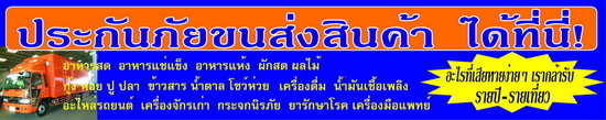 เจ้าของ เจ้าของสินค้า คนจัดคิวรถขนส่งสินค้า เรามีประกันภัยขนส่งสินค้าไว้บริการท่าน เช่น ทุเรียน เงาะ ส้ม แตงโม หรื่อผลไม้ตามฤดูกาลต่างๆ ท่านจะขนจากสวน หรื่อศูนย์กระจายสินค้า จากตหลาดสีมุมเมื่อง ตหลาดไท จะไป ใต้ เหนื่อ อิสาน ทางเราสายสามารถคุ้มครองและให้การรับประกันภัยให้ท่านได้ ทั้ง รถกะบะ รถ6 ล้อ หรื่อ 10 ล้อ ให้รับประกันภัยทั้งแบบรายเที้ยวและรายปี เงื่อนไขและค่าเบี้ย โทรที่ สำนักงาน 02-707-5661-2 กิ๊กค๊ะ รอสายท่านอยู่