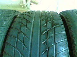 ยางกลางปี 09 ลงพื้นปี 10 สภาพพอใช้ได้ ดอกยังพอมี 3 เส้นดอกสึกเรียบ อีก 1 เส้นสึกกินใน เพราะศูนย์เพี้ยน ไม่เกี่ยวกับยาง