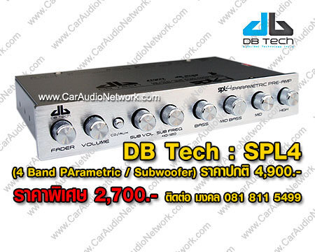 ขาย... ปรีแอมป์ DB Tech : SPL4 (4 Band) ราคาพิเศษ 1,200 บาท ระบบปรับแต่งเสียงดีเยี่ยม ชัดเจนทุกช่วงความถี่ เทคโนโลยีเยอรมัน (ถูกที่สุดในอินเตอร์เน็ต) ประกันศูนย์ บริการจัดส่งทั่วประเทศ