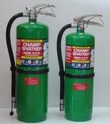 ถังดับเพลิง (Fire extinguisher) มีสารเคมีแตกต่างกันขึ้นอยู่กับการนำไปใช้ครับ ถังดับเพลิง ขนาดเหมาะมือที่ขายตามร้านทั่วไปจะมีการไนโตรเจนหรือแก๊สคาร์บอนไดออกไซด์ที่ถูดอัดความดันเพื่อใช้ฉีดดับไฟ สารออกฤทธิ์อาจจะเป็นแป้งเช่น โพแทสเซียมไบคาร์บอเนต (KHCO3) น้ำ ฟลูออโรคาร์บอนที่สามารถระเหยได้ หรือแรงดัน สารฟลูออโรคาร์บอนที่มีประสิทธิภาพมากที่สุดและถูกใช้จนปัจจุบันคือ โบรโมคลอโรไดฟลูออโรมีเทน (bromochlorodifluoromethane; CF2ClBr) หรือเรียกกันว่า ฮาลอน 1211 (halon 1211) อย่างไรก็ตาม จากข้อตกลงสากล การผลิตฮาลอนทุกประเภทยุติลงในปี 1994 เพราะว่าอะตอมของโบรมีนและคลอรีนสามารถลอยขึ้นไปยังชั้นบรรยากาศสตราโตสเฟียร์ ซึ่งเป็นที่ที่มันสามารถทำลายโอโซนได้