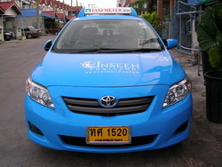มี TAXI ให้เช่าสีฟ้าไทยเอซเป็นรถบ้านใหม่ ยี่ห้อ TOYOTA CORALLA 1.6 j ตัวใหม่ มีระบบวิทยุติดตามตัว 1681 และ GPS ติดตามรถ ติดตั้งแก๊ส NGV มีวันฟรีให้ ขับ 7 วัน ฟรี 1 วัน ค่าเช่าควงกะ 1000 บาท กะเดียว 600 บาท