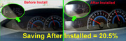 (โดยใช้ความเร็วคงที่ 100 km/hr ก่อนติดตั้งวัดได้ 9.5 km/l หลังติดตั้งวัดได้10.8 km/l จะได้ค่าความประหยัด=13.68%)