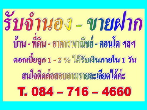 รับจำนองขายฝาก ฝากขาย บ้าน อาคารพาณิชย์และที่ดินติดต่อได้ที่นี่ค่ะ