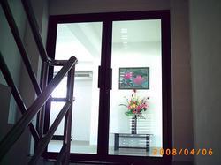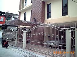 ประตูสเตนเลสเข้าตัวอาคารแบ่งออกเป็นสัดส่วน สามารถเปิดแยกกันได้