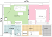 ตึก A2 ชั้น 2 ฝั่งทิศตะวันออก พื้นที่ 28 ตร.ม. แบ่งโซนห้องนอน