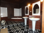 ชั้นล่าง จะปูพื้นด้วยกระเบื้อง มีห้องครัว ห้องรับประทานอาหาร ห้องพักผ่อน บาร์ ห้องน้ำ ห้องส้วม ( ห้องน้ำและห้องส้วมจะแยกจากกันเพื่อความสะดวก )