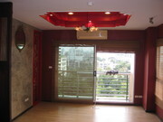 Living Room High ceiling Thai style architecture. Decorating with old light chandelier and include one air conditioner.