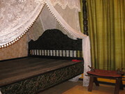Bedroom High ceiling to install antique bed. Build Chinese style sliding door; divider between bedroom and bathroom include one air conditioner.