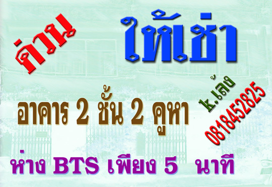 ^=^ ให้เช่า ตึกแถว 2 ชั้น 2 ห้อง ริมถนนสาทร ห่าง BTS สุรศักดิ์ เพียง 5 นาที=>081-8452825 (เล้ง)