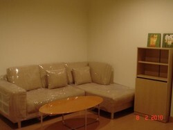 A room for rent at Life – Ratchada Huai Khwang. It is located at MRT – Huai Khwang station (exit 1) on Ratchadapisek road. The 41 sq.m room is near a lift lobby (Ratchadapisek view) and full furnished with LCD TV, refrigerator, microwave, water heater, kitchen set, dining set, Internet, sleeping set, curtain. Ready to move in.