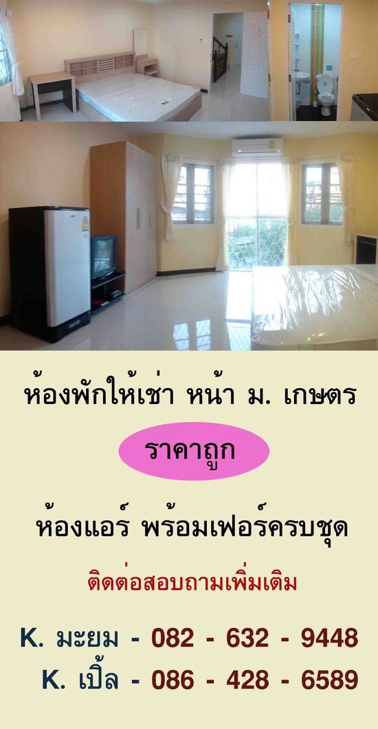 ห้องพักให้เช่าหน้าม.เกษตรราคาถูก