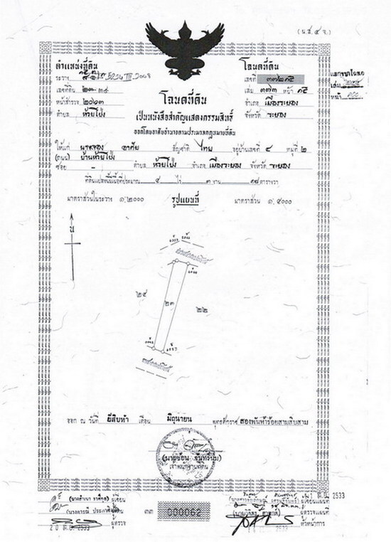 - รูปสี่เหลี่ยมคางหมู ด้านหน้ากว้าง 25.50 ม. ติดถนนลาดยาง ด้านหลังกว้าง 33.20 ม. ติดห้วยน้ำ ที่ดิน ด้านลึกประมาณ 235-239 ม.