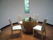 A driveway runs through the grounds leading to a garage big enough to comfortably park two cars, and a large courtyard. The accommodation is fully air-conditioned and consists of a stylish living room with large windows that face out into the garden, a large built in kitchen, three bathrooms, three bedrooms with wooden parquet flooring, and two maid’s rooms complete with their own kitchen and bathroom. A huge terrace tiled with ceramic tiles and sheltered by a traditional lath wood ceiling can be found at the front of the house, and acts as a perfect place to relax and unwind after a busy day.