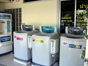 ด้านหน้ามีที่จอด/ล็อคมอเตอร์ไซค์ ตู้น้ำดื่มและเครื่องซักผ้า 3 เครื่อง