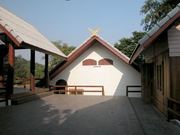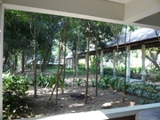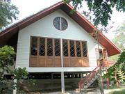 บริเวณบ้านแบ่งเป็นสองส่วน ส่วนที่เป็นบริเวณที่พักอาศัย และบริเวณที่จอดรถและเรือนคนดูแล แยกต่างหากโดยมีประตูกั้น ลักษณะตัวบ้านปลูกเป็นเกลุ่ม รวม 5 หลัง มีเรือนไทยปลูกด้วยไม้สัก 1 หลัง หลังใหญ่ปลูกอยู่ริมแม่น้ำ มีเตาผิง และพื้นเป็นไม้สัก มี 4 ห้องนอน บริเวณบ้านแบ่งเป็น 2 ส่วน คือส่วนที่เข้าจากประตูประกอบด้วยเรือนคนเฝ้า 2 ห้องนอนและบริเวณจอดรถส่วนที่สอง มีรั้วกันเป็นสัดส่วน มีทางเดินหลังคาคลุมจากบริเวณจอดรถ ถึงตัวบ้าน