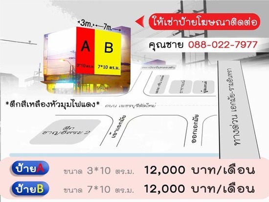 ให้เช่าพื้นที ติด ป้ายโฆษณา ทำเลดี ย่านเพชรบุรีตัดใหม่ ตัดแยกเอกมัย ใกล้ทางด่วนเอกมัย-รามอินทรา