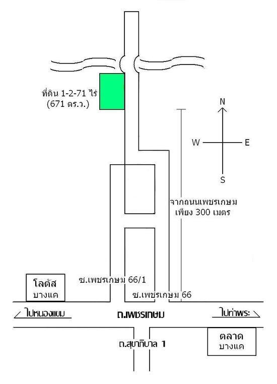 ที่ดินสวย 671 ตร.ว. ทำเลดีมาก ซ.เพชรเกษม 66 ถ.เพชรเกษม แขวงบางแคเหนือ เขตบางแค กทม. จากถนนใหญ่เข้าไปประมาณ 300 เมตร ถมมานานแล้ว เหมาะทำโครงการจัดสรรขนาดเล็ก หรือ อพาร์ทเม้นท์ และอื่นๆ ใกล้ตลาดบางแค โลตัส-บางแค อีกไม่กี่ปีก็จะมีรถไฟฟ้าสายสีน้ำเงินผ่านหน้าปากซอย