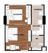 •ห้องแบบ 1 ห้องนอน 1 ห้องน้ำ 1 ห้องนั่งเล่น ห้องครัว ระเบียง ขนาด 37.68 ตร.ม. อาคาร A ชั้น 9