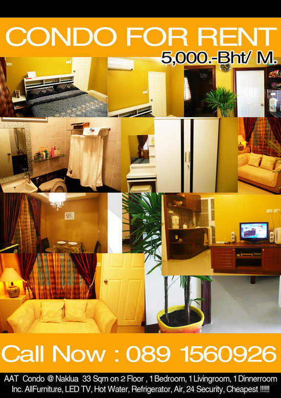 Condo Pattaya for RENT !!!! 5,000 Bht / Month Inc. all Furniture very nice..