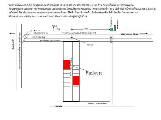ติดต่อขอแผนที่เส้นทางรูปถ่ายสถานที่จริงที่ดินในหลาย ๆ มุม แผนผังแปลงที่ดิน สำเนาโฉนด และข้อมูลเพิ่มเติมที่ คุณทวีศักดิ์ 0898007320, 0876185535 หรือ คุณ ประเทือง 081 594 2158 E-mail; [email protected] ช่วยระบุด้วยว่าต้องการดูรูปเพิ่มเติมของที่ดิน 3-3-32 ไร่ แสมขาว บางปะกง