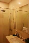 2. ห้องน้ำสุดหรูใช้ประตูกระจกเป็นที่่กั้นส่วนเปียกแห้ง ฝักบัวมีทั้ง 2 แบบ คือ Rain fall และ hand hold ก็อกน้ำมี 2 หัวรองรับน้ำร้อนได้