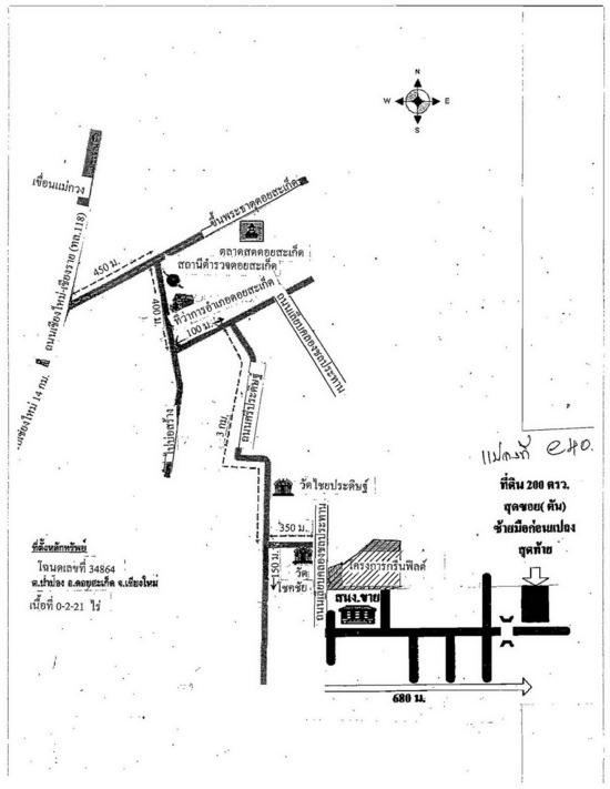 โฉนดเลขที่ 34864 พื้นที่ 200 ตารางวา ถ.ศรีประดิษฐ์ ต.ป่าป้อง อ.ดอยสะเก็ด จ.เชียงใหม่ ห่างจากสถานี ตำรวจดอยสะเก็ด 5.5 กม. เหมาะสร้างบ้านพัก