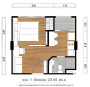 ห้อง 22.5 ตรม. 1 ห้องนอน1ห้องน้ำ1ระเบียง ตึก A2 ชั้น 8 ชั้นสูงสุด ไม่ติดลิฟท์ ไม่ติดถังขยะ ไม่มีตึกบัง