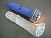หรือไฟฉายกระบอกโลหะ สีดำ รูปแถวบนขวา ด้านหน้าเป็นกระจก จึงทนไอสารเคมี และ ความร้อน ได้ในระดับหนึ่ง ใช้ถ่านขนาด D เพียง 2 ก้อน
