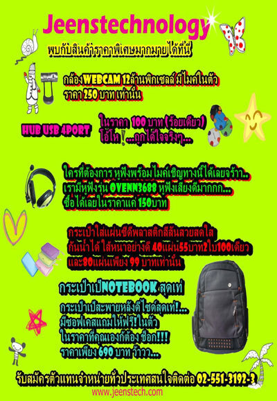 จำหน่ายวัสดุอุปกรณ์คอมพิวเตอร์ทุกชนิด สนใจติดต่อสอบถามรายละเอียดเพิ่มเติมได้ที่ ห้างหุ้นส่วนจำกัด จีนส์เทคโนโลยี