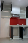 มีเครื่องปรับอากาศ อุปกรณ์ในห้องครัวแบบบิ้วอินน์พร้อมที่ดูดอากาศ และมีเตาไฟฟ้าสำหรับปรุงอาหาร