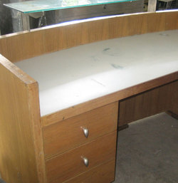 1ต้องการขายเค้าเตอร์สำนักงาน ร้านค้า ทำจากไม้อัดลายสัก มีลิ้นชักด้านใน ขนาด หน้ากว้าง 160 ลึก 60 สูง 108 ซม. สภาพ90% ราคาตอนทำมาประมาณ 20000 ต้องการขายราคาถูก