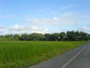 ทุ่งโล่งกว้าง ล้อมรอบด้วยทุ่งนา ถนนตัดผ่านหน้าที่ดิน
