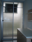 กั้นกระจกอลูมิเนียมระหว่างโซนครัวกับที่ตากผ้า + มุ้งลวด